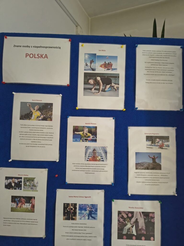W szkole pojawiły się także gazetki tematyczne o tym czym jest niepełnosprawność oraz o znanych osobach z niepełnosprawnościami. Cieszyły się one dużym zainteresowaniem uczniów.