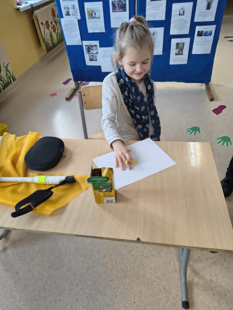 W krótkiej pogadance uczniowie dowiedzieli się czym jest niepełnosprawność, poznały osoby, które pomimo przeciwności osiągnęły sukces. Dzieci, dzięki specjalnym ćwiczeniom, mogły doświadczyć trudności, z jakimi mierzą się osoby z niepełnosprawnościami. Po zajęciach otrzymały zadanie, aby narysować siebie i jedną rzecz, w której są naprawdę dobre, bo każdy z nas ma mocne strony.