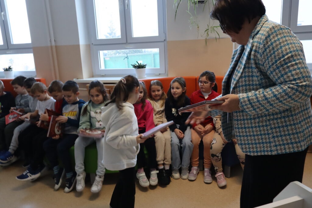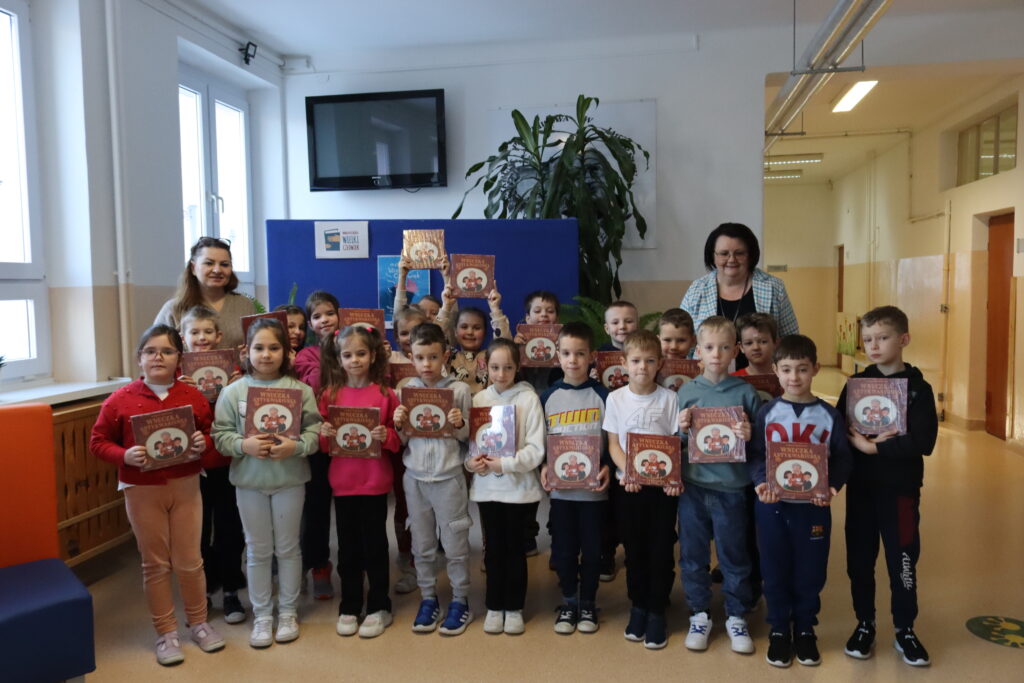 Czytanie książek to najpiękniejsza zabawa, jaką sobie ludzkość wymyśliła.W. Szymborska „Mała książka – wielki człowiek” to akcja ogólnopolskiego projektu realizowanego przez Instytut Książki ze środków Ministerstwa Kultury i Dziedzictwa Narodowego. Jej celem jest promocja czytelnictwa wśród najmłodszych oraz przypomnienie rodzicom, jak wielką rolę odgrywa wspólne czytanie w rozwoju emocjonalnym i intelektualnym dziecka.Wyprawkę Czytelniczą uczniom klas pierwszych wręczyła Dyrektor Szkoły – mgr Renata Marzec w dniu 19 stycznia. Pierwszoklasiści otrzymali książkę „Wnuczka antykwariusza” autorstwa Justyny Bednarek z ilustracjami Emilii Dziubak. Główną bohaterką jest Gabrysia, która w trakcie wizyty w antykwariacie swojego dziadka odkrywa wiele niecodziennych przedmiotów, przechowujących pamięć o minionych czasach.„Zabawa w czytanie” jest najcenniejszym darem, jaki możemy przekazać dzieciom. Pozwala ona na wspólną podróż z rodzicem przez krainę słowa. Rozdawane wyprawki to zaproszenie do międzypokoleniowej gry, w której główną nagrodą jest zachwyt nad światem. Nawigacja wpisu Poprzedni wpisPoprzedni Komunikat dla rodziców i uczniów — bezpieczeństwo kont LibrusNastępny wpisNastępny DZIEŃ BABCI I DZIADKA